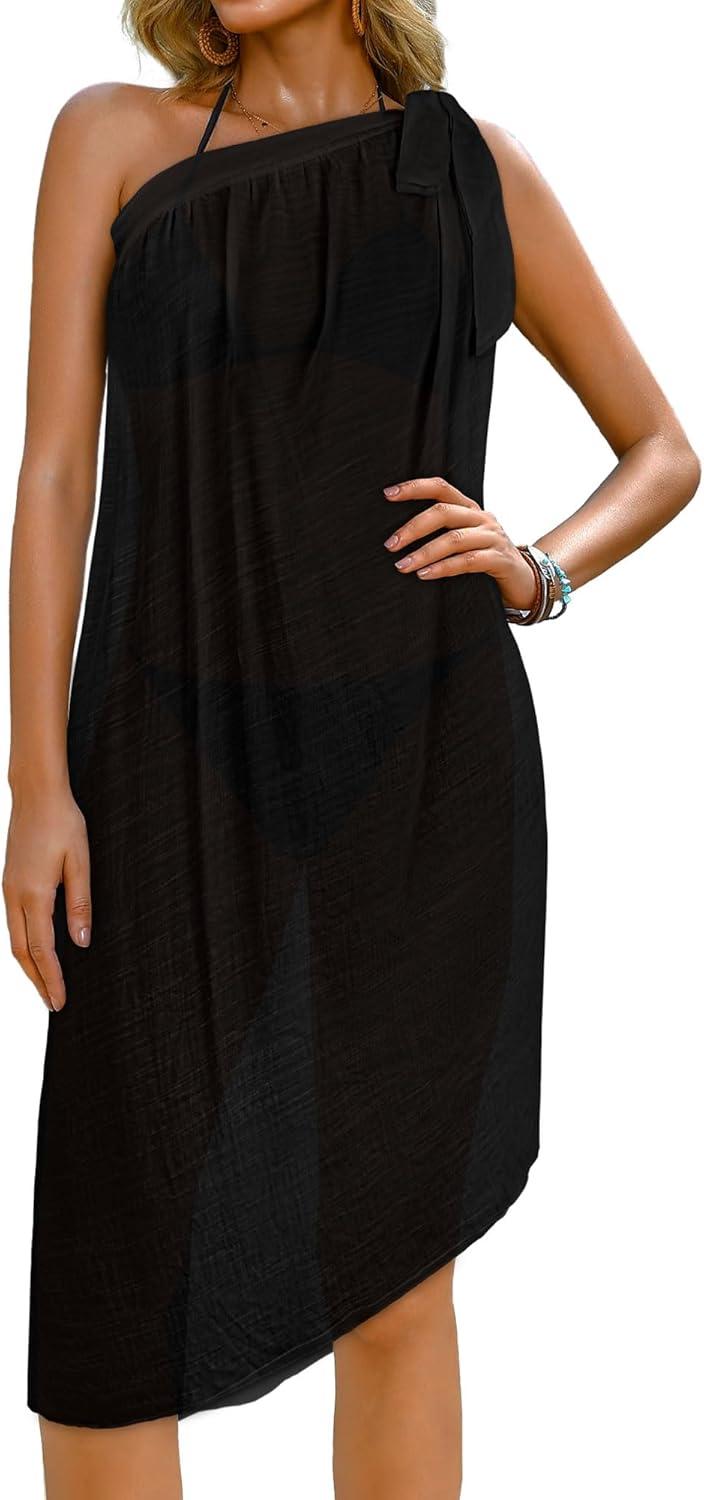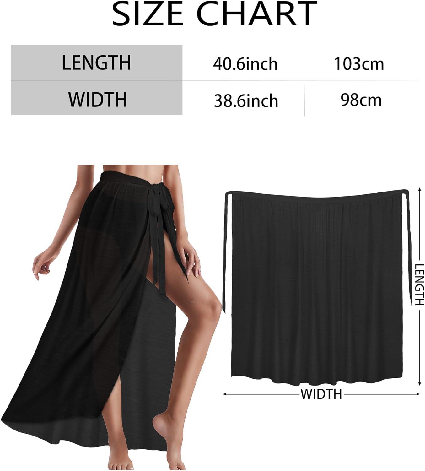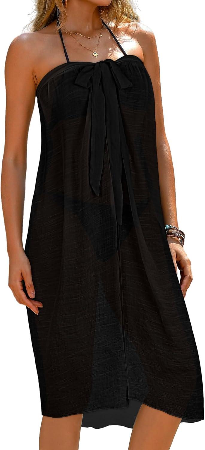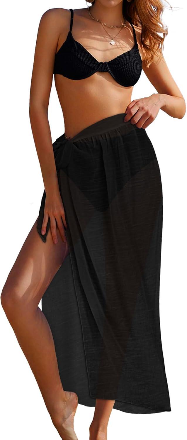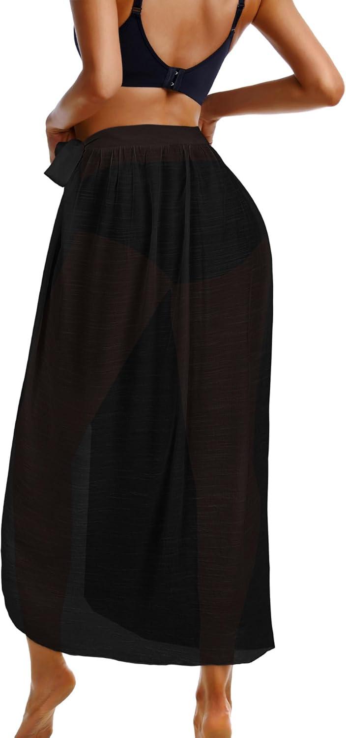 CHICGAL Sarong Wraps for Women Long Bathing Suit Cover Up Beach Tie Swimwear Summer Bikini Swimsuit Coverups(Black)
