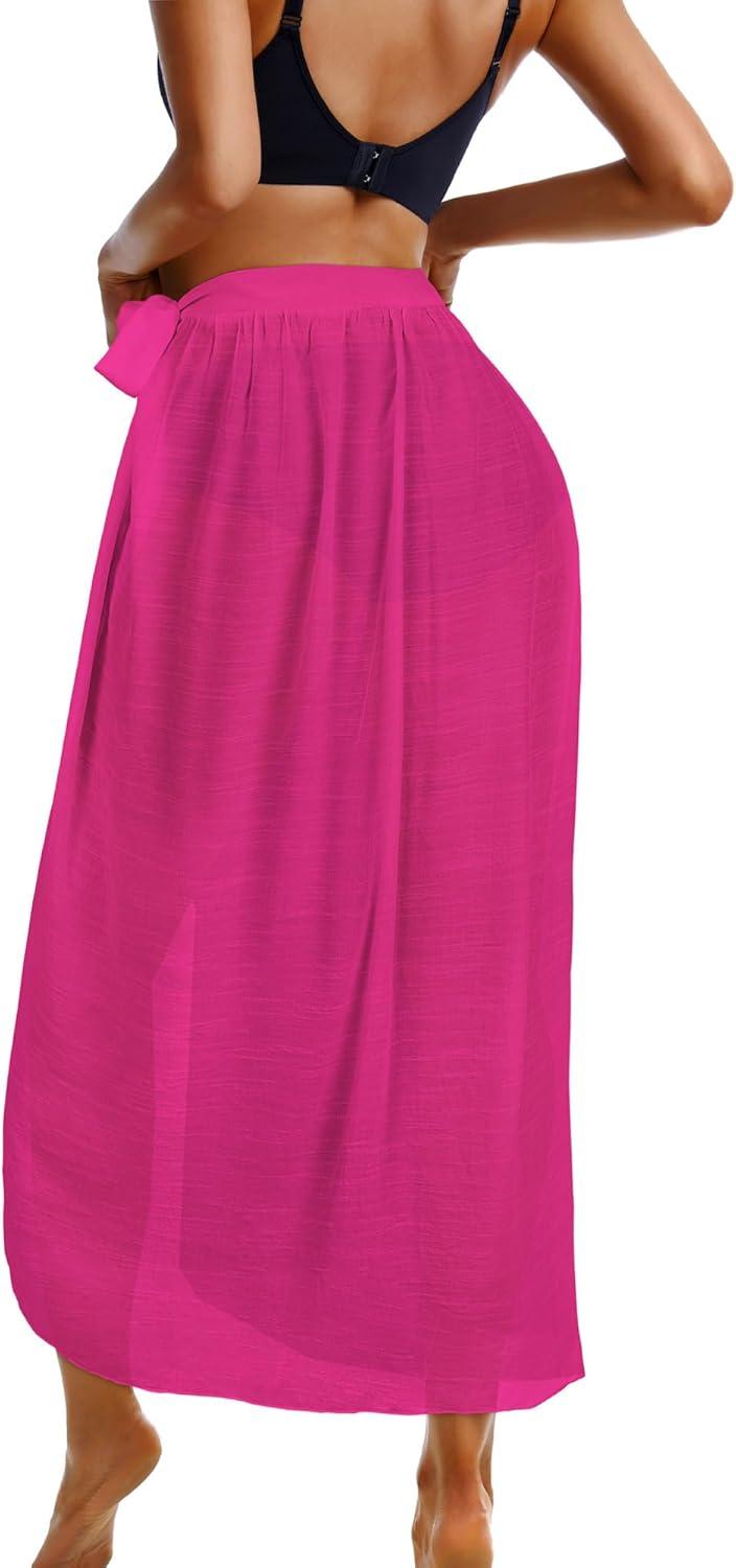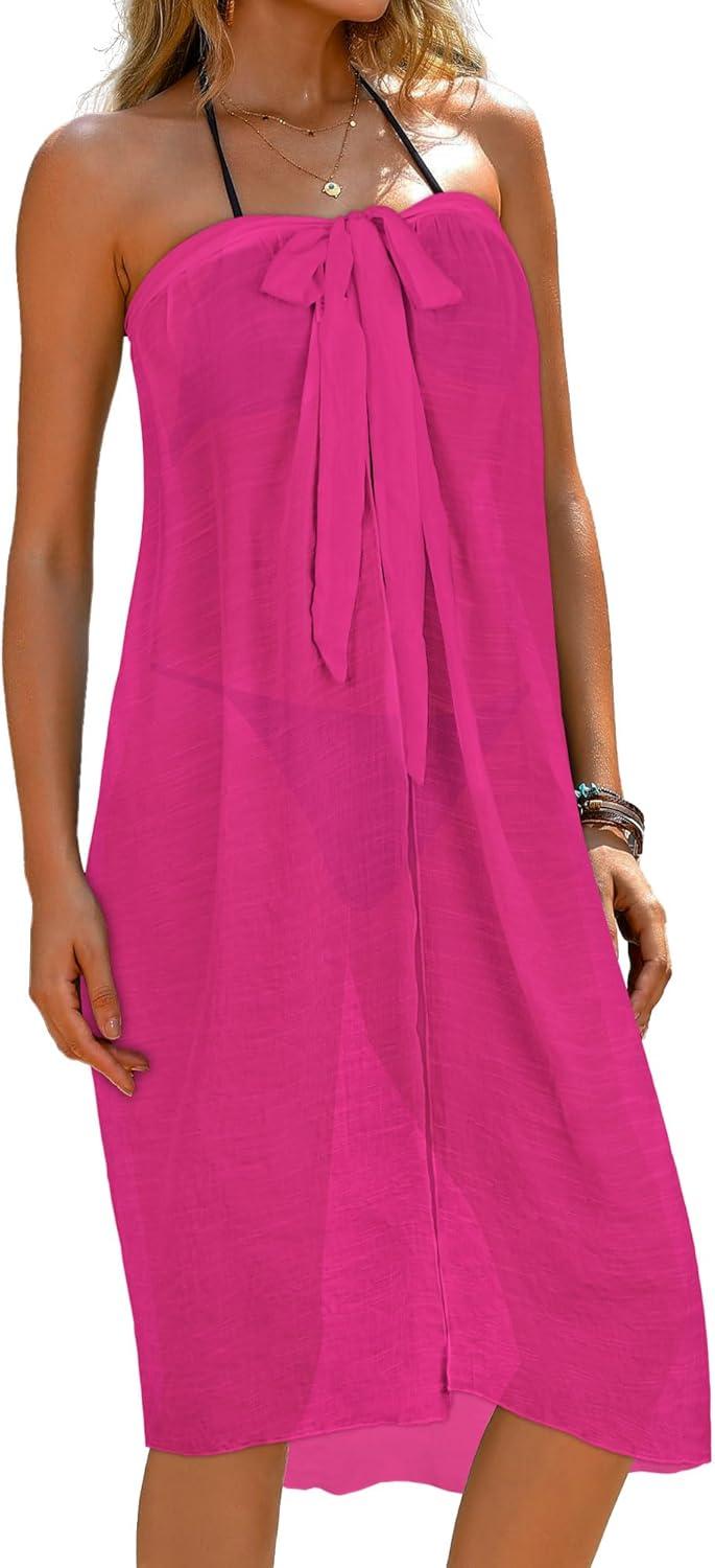 imageCHICGAL Sarong Wraps for Women Long Bathing Suit Cover Up Beach Tie Swimwear Summer Bikini Swimsuit CoverupsLight Pink