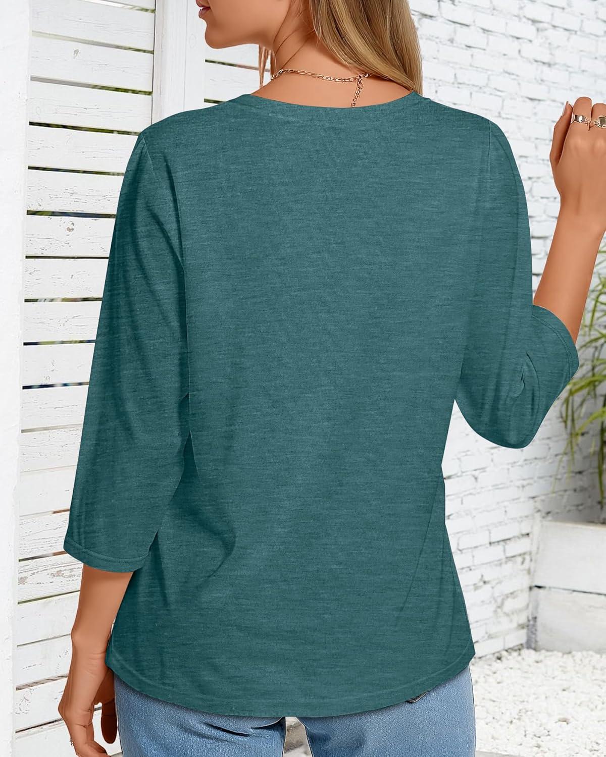CHICGAL Women 3/4 Sleeve Shirts Casual Round Neck Tops Basic Tees Cute T-Shirts Blouses(B Green)