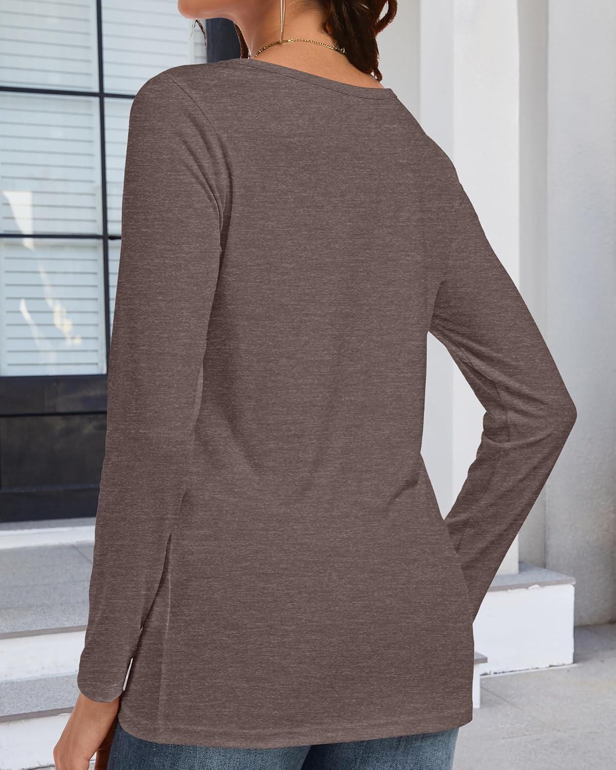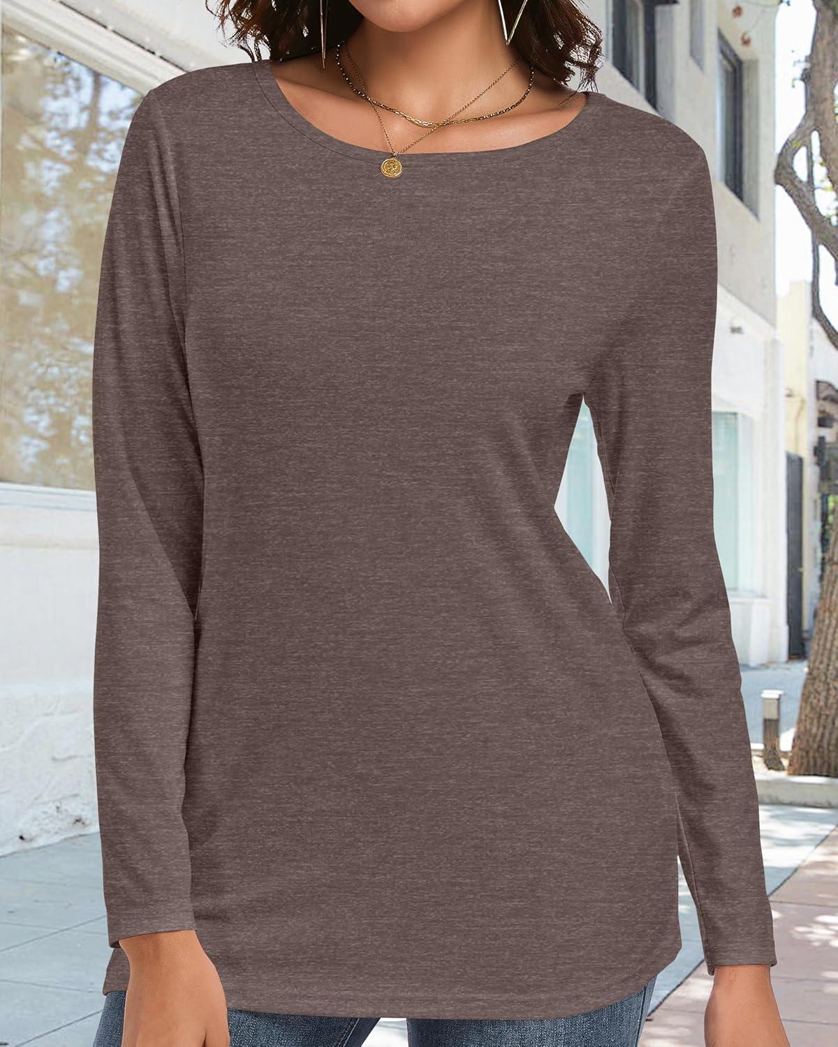 CHICGAL Women Long Sleeve Shirts Casual Fall Tees Crew Neck Basic Tunic Tops(Deep Brown)