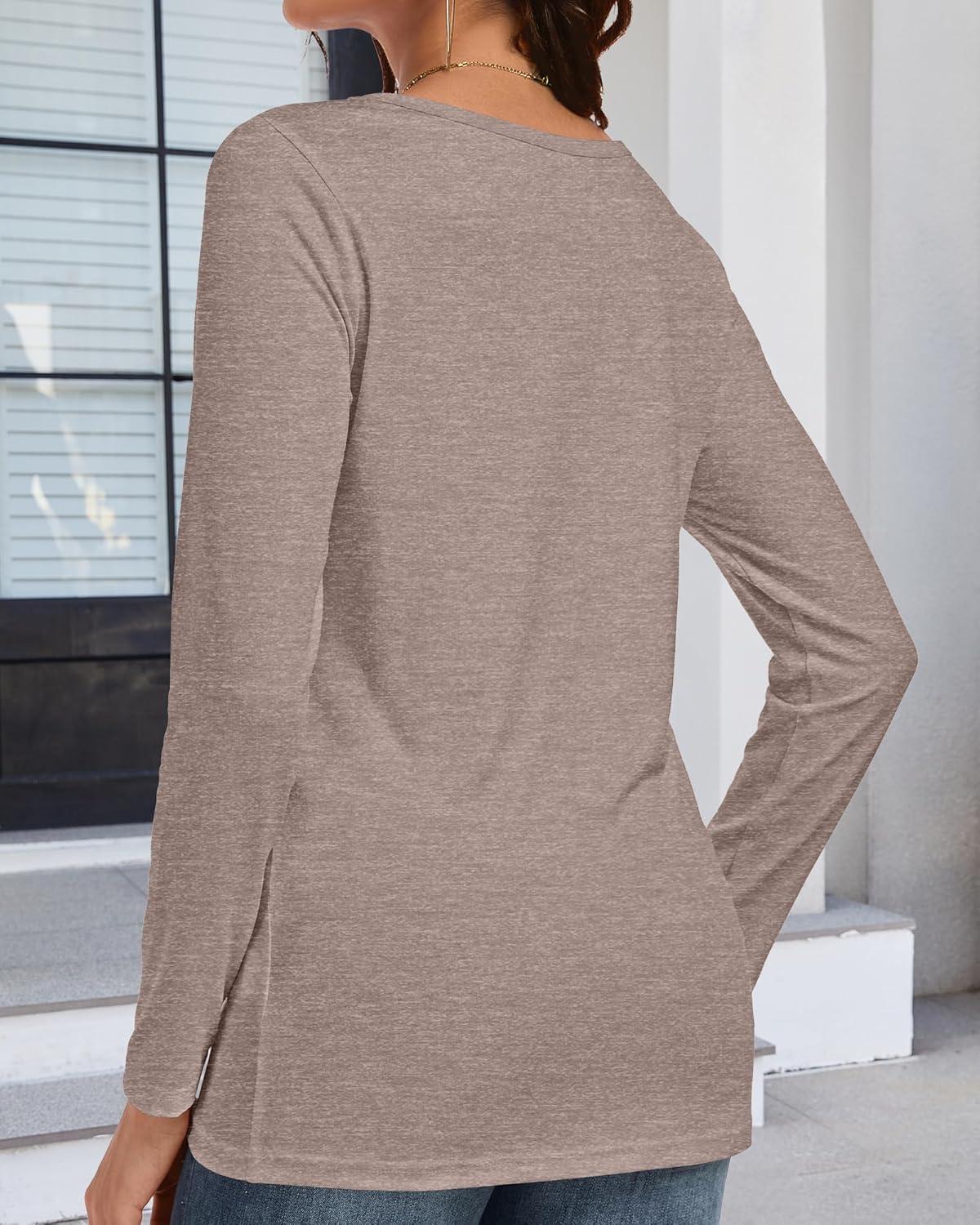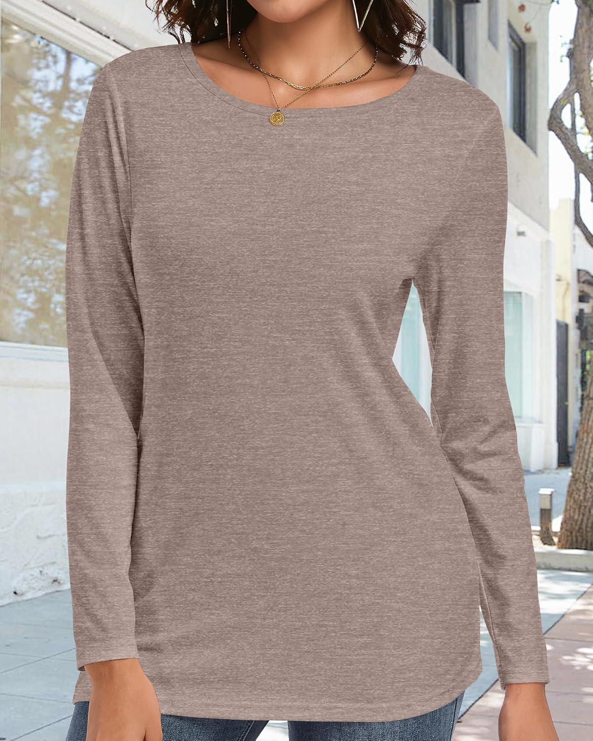 CHICGAL Women Long Sleeve Shirts Casual Fall Tees Crew Neck Basic Tunic Tops(Khaki)