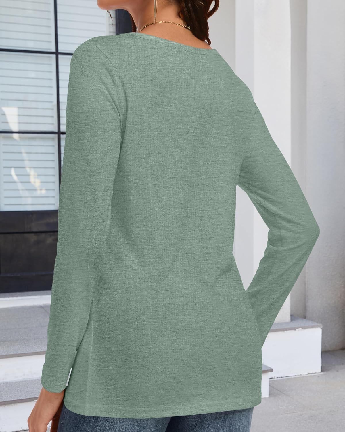 CHICGAL Women Long Sleeve Shirts Casual Fall Tees Crew Neck Basic Tunic Tops(Light Green)