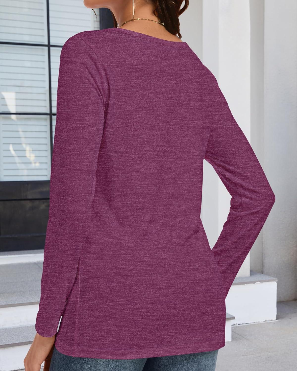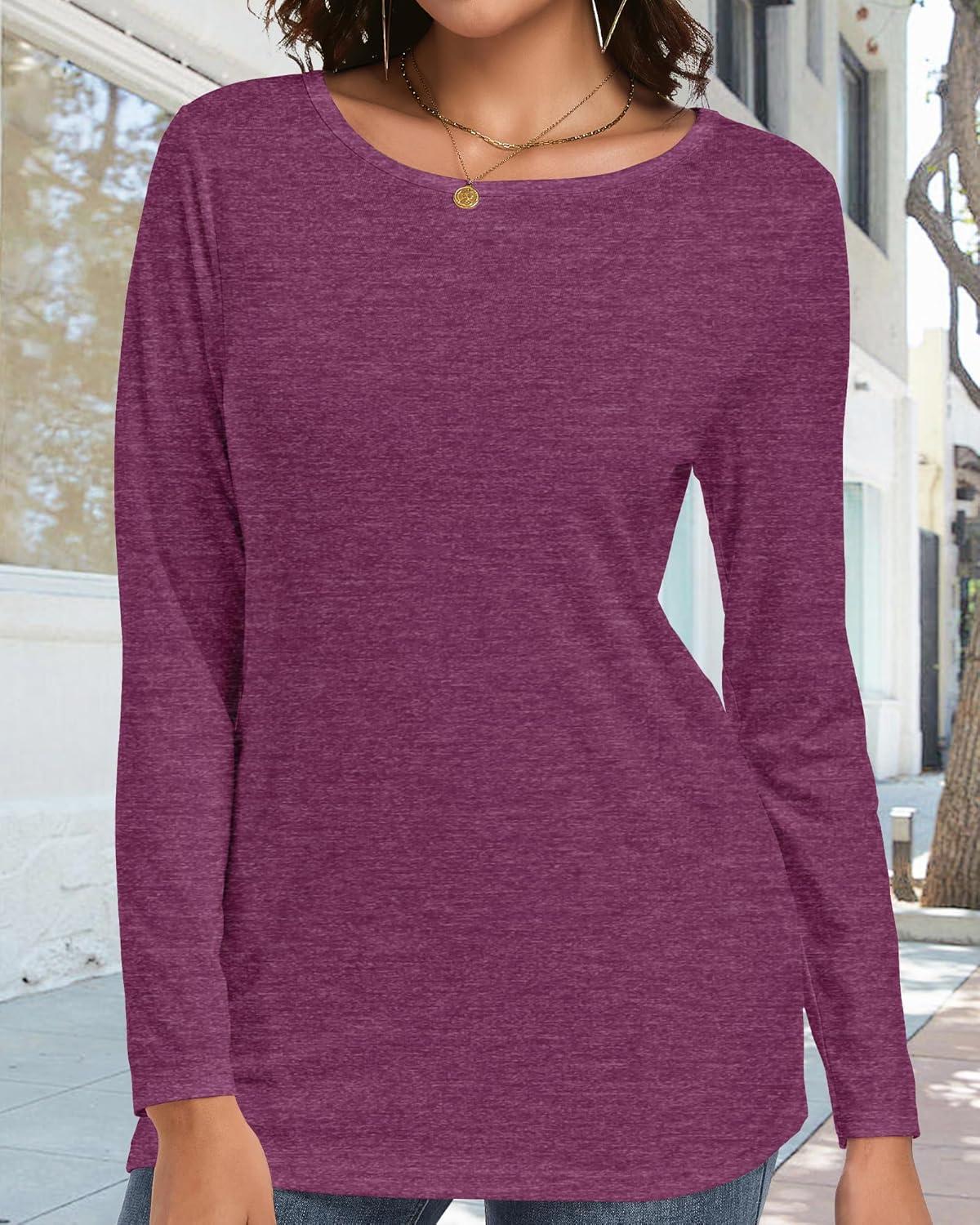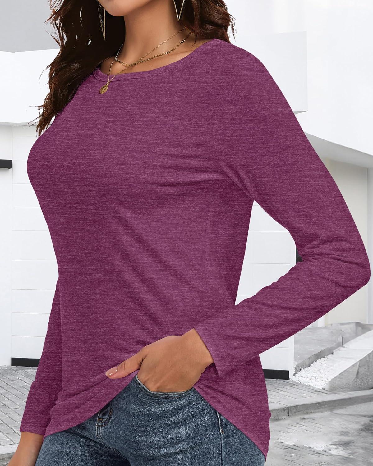 CHICGAL Women Long Sleeve Shirts Casual Fall Tees Crew Neck Basic Tunic Tops(Purple Wine Red)