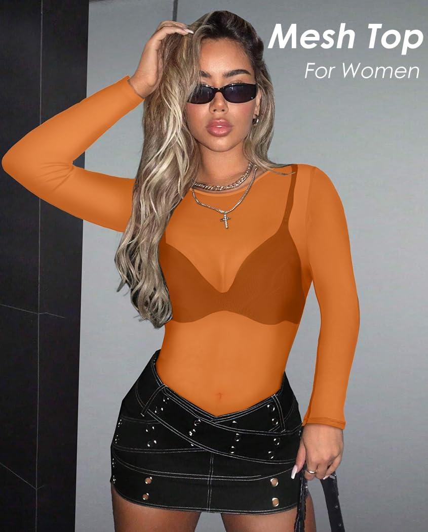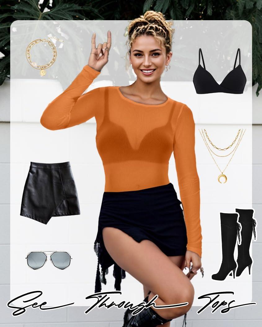 Our holiday sale features the best deals on Women’s Mesh Tops Sheer Long Sleeve Tee Shirts Bodycon See Through Blouse Clubwear(Orange) and accessories. Shop now and save!