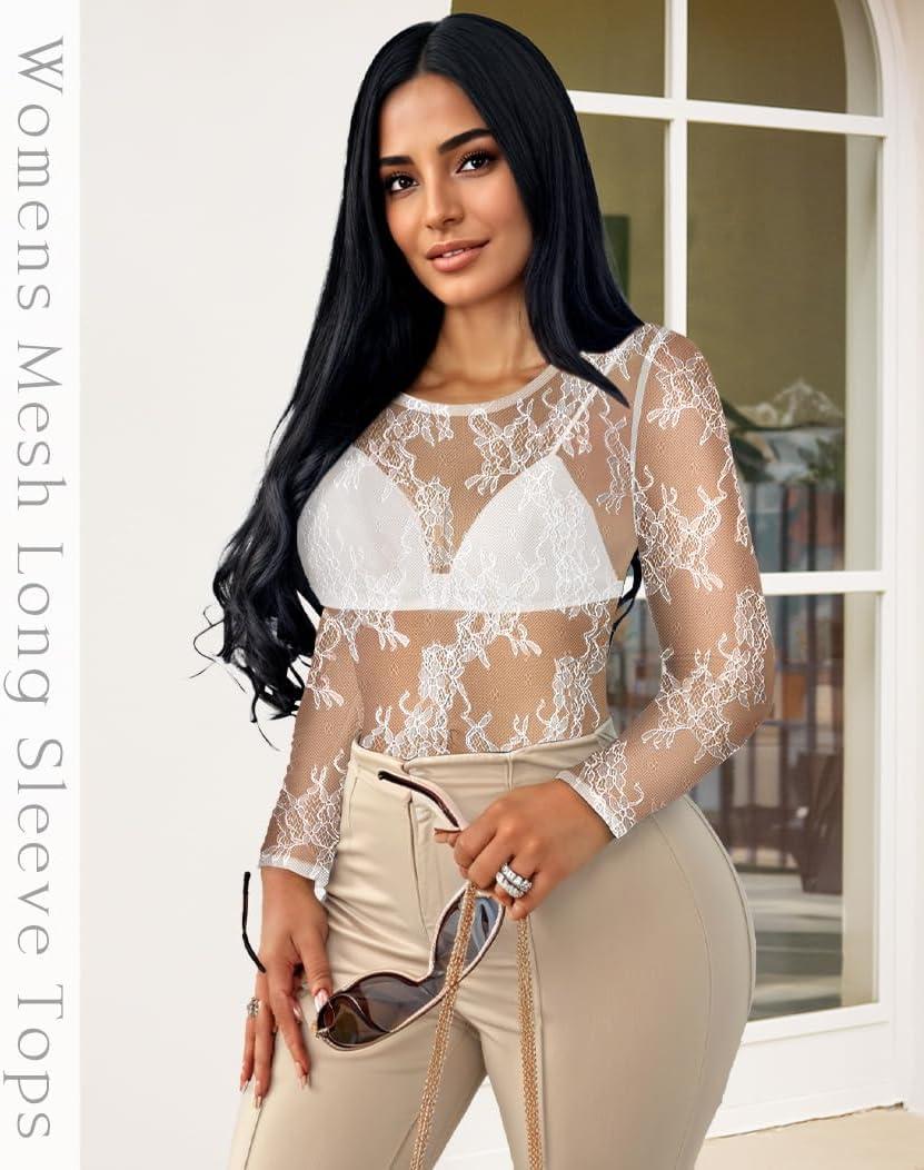 Our clearance event features the best deals on Women’s Mesh Tops Sheer Long Sleeve Tee Shirts Bodycon See Through Blouse Clubwear(White Floral) and accessories. Shop now!